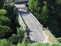 場所 永山橋(ながやまばし)の所在地は、熊本県・菊池市大字原字永山です。菊池市の中心部から左手に菊池神社をながめ、国道387号線を登ります。菊池神社から10kmほど進むと、やがて立門の大きな交差点に来ます。ここで右方向へ進みます。この道は県道45号線で、菊池阿蘇スカイラインと呼ばれています。交差点から2kmくらいのところが、永山地区になります。県道の右下へ下りる道路がありますから、徒歩で進みます。県道に広い駐車場があったので、そこにバイクを停めました。