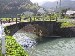 この中村眼鏡橋は、津奈木町指定文化財です。ただしコンクリートで補修されているため、昔の面影がなくなっています。道路部分は拡張され、新しい手すりが取り付けられています。架橋は、嘉永3年(1850)年となっています。橋の幅は3.8mあり、車の通行も可能です。橋の長さは13.3mあります。