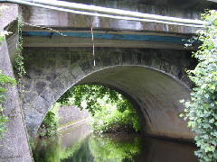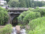 この石橋は、大正5年(1916)に架けられたもので、単一アーチの石橋です。橋の長さ7.3m、橋の幅5.0m、スパン6.8mの造りで、橋の上はアスファルトで舗装してあります。橋の両サイドに車道部分と歩道部分が拡張されていて、石橋を囲むようになっています。橋の下に降りて見ましたが、全体像は分からなくなっています。この撮影場所へ行くのに、足場が悪くて苦労しました。川に落ちそうな場所ですし、蚊が多くて早々と引き上げました。