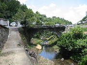 小さな欄干にかわいい親柱が取り付けてあるこの石橋は、弘化元年(1844)に、種山組によって架けられたものです。橋の長さ9.1m、幅3.03m、径間7.43m、拱矢3.86mとなっています。この石橋は現在も使用されていますが、コンクリートで橋の幅が広くしてあります。ここも地域の農道といった感じです。拡張された橋に合せて、欄干も横に移動しているようです。
