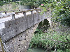 沢無田橋は、明治10年頃架橋の、単一アーチの石橋です。橋の長さ20m程度、幅3.5mと大きめの眼鏡橋です。この石橋は、車の乗り入れができます。橋の上部は舗装され、側面の上部半分もコンクリートで補強されています。そのため、輪石や壁石の一部が隠れています。保存することよりも、補強して現在も使用できる生活道路になっています。
