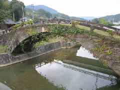 この橋は明治4年(1871)に架けられましたが、壊れています。再建されたのは、明治15年(1882)になります。橋のたもとには庵があり、その入口には「施無畏橋」とかかれた大きな記念碑が残されています。橋の長さ22m、橋の幅3mとなっています。親柱は小さめですが、欄干の造りはていねいです。保存の状態もよく、本渡市指定の文化財になっています。