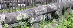 欄干の写真をご覧ください。円柱形の石と、それを支える石の形が凝っています。この欄干の形式は、御船町の下鶴橋と非常によく似ています。石工は同じように橋本勘五郎ですから、高井川橋のことを思い出しながら御船町の下鶴橋を造ったのかもしれません。せっかくの石橋ですが、落下防止のために高い柵が設けられています。現役の橋ですから仕方ないですが、できれば取り外してほしいものです。