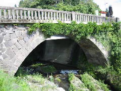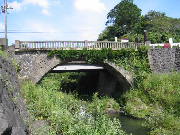 場所 田中橋(たんなかばし)の所在地は、鹿本郡鹿北町多久字田中です。田中橋は別名車橋、あるいは化厳矼(けごんこう)と呼ばれています。ここを訪問したのは鹿北町役場に近い「女田橋」を見た後ですから、国道3号線から県道18号線へ入りました。この県道は交通量が少なく、かつ見晴らしの良い道路です。途中板曲河川公園があり、家族連れでにぎわっていました。岳間郵便局のすこし先に、県道右側に平行になっていますから、すぐにわかります。