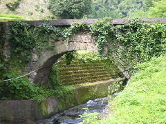 場所 山中橋(やまなかばし)の所在地は、上益城郡矢部町北中島です。山中橋というのは北中島小字山中という地名からとったものです。御船町から国道445号線を東に進み、矢部町へ入ります。この国道沿いにはいくつもの石橋がありますが、矢部町の中島西部小学校から左折します。やがて大きな鉄筋コンクリートの山中大橋がありますので、渡ったところで車を置きます。小さな案内板の矢印に沿って、徒歩で左方向へ行きます。15分ほど路地を下ったところにこの石橋があります。