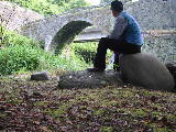 八勢眼鏡橋の欄干が気に入りました。ていねいな造りになっていて、橋全体と調和しています。昔の人々はこの橋の上で休憩をとり、四季折々の風景を楽しんだに違いありません。右の写真は公園の石に腰かけ、過去の様子に思いを巡らす私です。最近購入したバイク用のベストが決まっています。ここで一句 岩を割き 石を重ねて 人の道