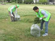 | 下代公園の草刈り | 刈り草の処理 | 刈り草の袋詰め | 子ども会の清掃活動 |