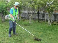 | 自治会役員は公園で頑張っています。毎週月曜日と木曜日。 4月広報で月曜日と記載しましたが、木曜日も作業をしています。公園に出かけると、緑のベストと帽子を着用して役員が集まってきます。1時間程度の清掃作業ですが、公園もきれいに保たれています。5月12日に子ども会の皆さんと、花壇の花を処理しました。キンセンカとノースポールです。6月に花壇を耕運機で耕します。 |