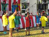 子どもみこし 花笠音頭 ソーラン節踊り ひょっとこ踊り 相馬盆唄 子わらべの会 タヒチアンダンス バンド演奏 バナナのたたき売り マウンテンバイク 出店は極さん ステージ前の観客 |