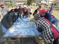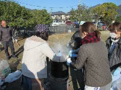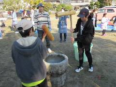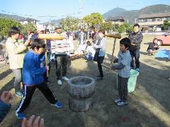 | たくさんの方が、もちつき大会に来てくれました 多くの町民の方が、下代公園に集まりました。子供たちは石臼でのもちつきを楽しみ、もちをたくさん食べてくれました。子ども会役員が作ったトン汁も評判がよく、みんなで食べ尽くしたほどです。参加者は200人を超え、地域の絆も深まりました。役員の皆さん、お世話になりました。 |