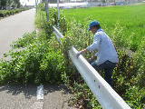 | 熊本西高校前の交差点は、見通しが悪いので作業しました 交差点の見通しが悪いと、ある人から連絡がありました。現地を見に行くと、確かに木と草で右方向から来る車が見えません。そこで役員と一緒に用水路のり面の木を切り、草を刈りました。西高西側の正門前になります。この場所は高校生の保護者が車から生徒を下ろす場所になります。これで交通事故も防げます。 |