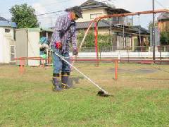 | 下代公園の剪定作業をしました 草刈りもしました 下代公園の南側に二本の樹木があります。落葉樹のために、冬の落ち葉を片付けるのに苦労していました。また近隣の住宅にも落ち葉が舞い降り、雨どいを塞いでいました。そこで業者を呼んで、剪定作業を依頼しました。同時に公民館のタブの木も剪定してもらいました。茂っていた枝もなくなり、すっきりしました。 公園の草が伸びましたので、中尾さんと福井が草刈りをしました。できるだけ遊具周辺を刈るようにしています。草が生い茂ると、幼い子どもたちは恐がって遊びません。これでしばらくはいいでしょう。 |