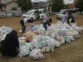| 子供会の皆さんが、資源物回収に汗を流しました。 10月21日の午前8時半から、子供会が資源物回収をしました。町内の玄関前に出された物を、子供たちはリヤカー等を使って集めました。アルミ缶と新聞紙が中心ですが、町内の皆さん方の協力があり、大量の資源物が公園に運ばれました。収益金は子供会の活動費になります。 |