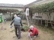 公民館の大掃除にがんばりました 毎年恒例の公民館大掃除を、12月23日にしました。自治会役員・公民館役員・運営委員・子供会役員で20人ほどが汗を流しました。女性は部屋の掃除を受け持ち、男性は庭の剪定作業が中心です。サザンカの剪定が思ったよりも量が多く、透明袋で20個以上になりました。正月のしめ飾りと鏡もちは公民館長の吉武さんが準備しました。 |