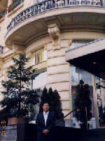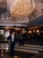 ホテルの玄関で記念写真です。部屋はゆっくりした気分で過ごせました。中央は、ホテルのロビーです。タイムスリップをした気分です。コンサートがあるからということでついていきましたが、日本は深夜です。半分は寝ていました。最初から過密の日程でした。
