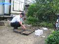 23日(日) 飲みすぎて7時半に起床。8時半から駐車場で板を切る。何とか金太郎人形五体分が終了。駐車場の掃除をして朝食。色を塗った教材にニス塗りをする。人形の組み立ても行う。1時に畑。最後まで残っていたネットを外し、あとはひたすら草刈りである。3時間の草刈りで、北の畑はすっきりした。さらに西側の畑で草刈りをしていたら、突然の雨が振り出し、急いで帰宅する。夕方になり息子夫婦と孫がやってきた。