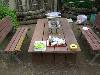 27日(日) 5時に起床。ゾウのペイントが完成する。ペイント用の絵具をすべてチェックする。固まって使用できない絵具を処分する。6時半にチェリーと畑へ行き、野菜の確認をする。このとき白川土手で四つ葉のクローバーを11本発見する。8時に帰り朝食。10時半に学校便りが完成する。ホッと一息。HIヒロセに二人ででかけ、食料品等を購入する。1時半に畑へ行く。@ピーマンの草取り。Aツクネイモに支柱を立て、紐をかける。妻が来てスナックエンドウの収穫。私はエンドウとパセリを収穫して帰る。5時半から庭でバーベキューをする。テーブルがよくなった。7時に終了。風呂に入り休む。