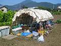 13日(月) 体育の日。5時起床して、トールペイントをする。散歩して朝食。トラックでチリ出し。金は貯まらないのに、ゴミは増える。散髪に行ったら今日も閉店。9時半畑へ行き、農作業を楽しむ。@ナスとピーマンの収穫。A草取り。12時に帰宅して、お出かけの準備。フランス料理店「魚座」へ行く。テーブルの上はパンのくずが散乱する。フタバへ行き、ブロックを購入する。帰宅して1時間ほどHPの入力をする。畑からパラソルを持ち込み、庭の模様換えを行う。テーブルにブロックも敷く。6時のバスに乗り、お城祭の見学へ行く。竹之丸で沖縄・島唄を聴き、友人とのみに行く。9時に帰り、休む。