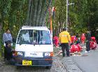 10日(日) 着替えて8時半には畑へ行く。@サトイモ収穫。Aチンゲンサイ収穫。Bダイコンを200本収穫する。1時帰宅して学校へ行く。チェーンソーでキョウチクトウを剪定する。1時半になったので、サッカー部部の保護者6人と一緒に高平台の竹林へ出かける。学校の門松を作るために、竹の切り出しを行う。できるだけ大きな竹を選ぶので、道路に出すのが大変だった。生徒も一緒に竹を切り、60cmの長さにそろえてくれた。愛車・軽トラックに載せ、ゆっくり学校へ戻る。4時到着。竹を下ろし、今後の打ち合わせをする。解散したあと、キョウチクトウの剪定枝を細かく切った。5時帰宅。収穫したサトイモを、福岡の息子に送る。