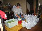 | 暗い雰囲気で作業をしているのは、自宅での私です。収穫したエンドウを、量りに乗せて分けているところです。この日の作業で、50袋完成しました。京陵中の先生方は、50人です。先生方が喜ぶ姿を期待して、翌日トラックに載せて出勤ました。重い荷物を二階へ運び、職員室で配りました。福井農園の無農薬野菜です。次の予定は、ピーマンとナスです。200坪の福井農園は、家族で食べるには広すぎます。忙しいときは、グリーン部が手伝ってくれるとありがたいのですが。 | ![]() |