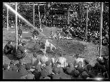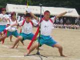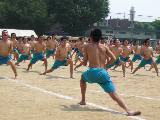 | 叶校長先生から、古い写真をいただきました。校長室に置いてあった古い木箱を開けたところ、数十枚のフィルムが入っていたそうです。フィルムといっても、ガラス乾板のネガです。明治・大正時代に使用された乾板ですから、私も初めて見ました。叶先生が業者に依頼して、焼付けをしてくれました。写真に写っていた物は、昭和10年代の様子です。本校の敷地には、元々「熊本高等小学校」(男子高校)がありました。右の写真は、相撲大会です。この他、白川での石拾いと運搬、文化祭、土木作業、炭焼き、校長先生の写真など45枚です。このアルバムは学校に保存しますので、興味のある方は見にお出でください。なおCDにも保存してありますので、必要な方は実費でお分けします。 |