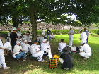 | PTAのクラス対抗ミニバレー大会が、7月8日(土)の午後に体育館でありました。初めてのことでどうしようかと考えていたら、3年2組から声がかかりました。2試合に参加しましたが、いづれも負けたので責任を感じました。その後の茶話会が盛り上がり、楽しいひとときを過ごすことができました。保護者の方も元気がよく、日頃のストレスを発散していました。愛用のトレパンに、大きな穴が開きました。 | ![]() |