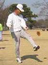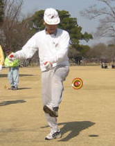 二の丸公園での撮影です。会員の方にお願いして、左足かけ・右足かけをしていただきました。私もこれはできるのです。平成16年2月11日。