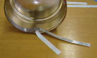 作成 D板鉛を広げ、鉛筆等で伸ばししわを取ります。 E板鉛に両面テープを張ります。 F缶の内側に板鉛を貼っていきます。私の場合、4枚貼りました。重ね貼りしますから、最初に貼った位置に目印をいれておいてください。