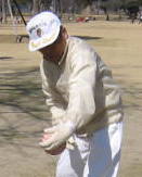 二の丸公園での撮影です。会員の方にお願いして、左裏指かけをしていただきました。平成16年2月15日。
