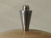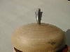 ちょんかけごまのしん 下に二つの写真を載せました。左は、購入したときのしんです。鉄で作られています。このしんの欠点は、落としたときにはずれることです。何度もたたいてはめますと、やがてこまの穴が大きくなって困ります。接着剤もなかなか効果がありません。