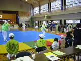 今年も「第2回こどもちょんかけごまフェスティバル」が、熊本市立春日小学校の体育館で開催されました。二回目になりますので、準備から運営までが計画通りに進められました。では、平成17年1月16日(日)のイベントの様子を紹介します。