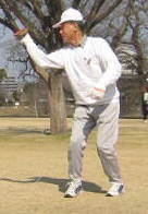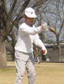二の丸公園での撮影です。会員の方にお願いして、右掌回し→川下りをしていただきました。平成16年2月11日。