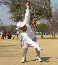 二の丸公園での撮影です。会員の方にお願いして、こいの滝登りをしていただきました。平成16年2月11日。