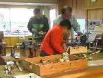 この玩具展の期間は、平成16年1月7日(水)から1月12日(月)まででしたが、親子連れの参加者で賑わっていました。私は1月10日(土)の午前11時に、肥後こま作りの体験がしたくて、早速出かけました。材料費300円を払って、こま作りに挑戦しました。