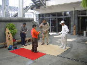 工芸会館の中庭で、こまの実演と指導があっていました。指導者の方は、肥後ちょんかけごま保存会会長の中村泰司さんです。顔なじみでしたので、いろいろ話を伺うことができました。この時期はイベントが多く、各地で活躍されています。
