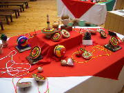 資料館での展示の題は、「錦凧と球磨独楽」となっています。展示期間は、平成16年3月16日(火)から4月11日(日)まででした。元会社員の東正一さんは、二年前に「工房どんぐり」(球磨郡錦町西)を設立しました。球磨地方に伝わる球磨独楽を中心に、制作販売しています。