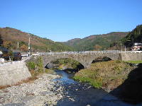 平成14年11月23日(土)に、大牟田市から八女市をめざし北上しました。車のナビを利用して、上陽町へ到着したのは、午後1時でした。昼食後に上陽町の眼鏡橋を捜しましたが、宮ヶ原橋を見た後に町の中心部へ向かいました。上陽町には11の石橋が存在しますが、栗林橋は町の東よりになります。