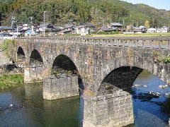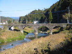 平成14年11月23日(土)に、大牟田市の早鐘眼鏡橋を訪問しました。さらに国道208号と国道209号を利用して、八女市をめざし北上しました。車のナビを利用して、上陽町へ到着したのは、午後1時でした。途中コンビニの弁当を買い、まずは腹ごしらえをしたのです。上陽町で最初に出会ったのが、ここ宮ヶ原橋です。