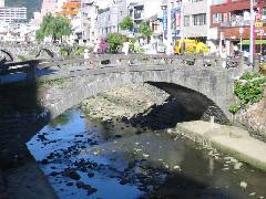 現在もしようされている現役の橋です。路面は石畳になっていて、昔のままの面影を残しています。欄干等も立派ですが、お隣の眼鏡橋を撮影するための石橋といった感じです。