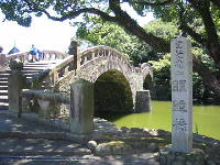 重要文化財 眼鏡橋 この橋は、すぐそばを流れる本明川の下流、ここから約450メートルの所に架けられていたものです。本明川は昔からたびたびの洪水で橋が流され、人びとは長い間苦しんでいました。そこで、永久にこわれない石橋を作りたいという切実な願いが起こり天保10(1839)年精魂込めて架けられたものです。それからは「いさはやのめがねばし、いきもどりすれば、おもしろかなり」と数え歌とともに愛され、親しまれてきました。 昭和33年11月29日 文部省・諫早市教育委員会 |