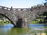 石造りの二連アーチは、優美な印象を与えます。石造りであるにもかかわらず、橋全体が弧を描いているからです。しばらく芝生に座り、ながめていたほどです。あたかも鷹が羽を広げ、今まさに飛び立とうとしています。この橋の特徴は、大きい割には壁石が少ないということです。つまり、輪石のカーブに合わせて、高欄と路面が造られています。二百近い石橋を見学しましたが、美しい橋の一つと思います。