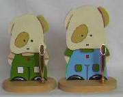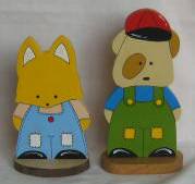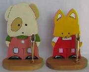 下の写真は、キツネと帽子をかぶったイヌになります。これまでの図案に帽子をつけましたが、おかしな顔になりました。この二つは、メモホルダーになります。わかり易いように、背面の写真も載せました。