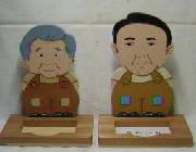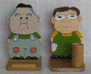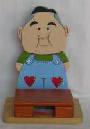 下の写真は、三つとも名刺入れです。顔は全員おじさんタイプです。茶色の服を着て、働き者の雰囲気です。左2つの名刺入れ部分は、自分で板を切り抜きました。右の名刺入れは、百円ショップの物です。