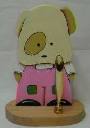 左のワンちゃんは、ペンホルダーです。背面にメモホルダーになるよう、クリップを接着しています。右のクマちゃんは、後ろに百円ショップのメガネホルダーを接着しました。鉛筆や定規を立てるとよいでしょう。わかり易いように、背面の写真も載せました。