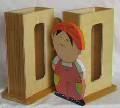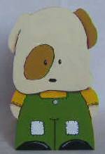 下の写真は、同じティシュホルダーの試作品です。最初に作ったのが、このクマさんです。横置きのホルダーを真似して、シナベニヤをくりぬきました。しかし、切断に時間がかかること、背面に板が見えることで失敗だったと思います。そこで上のようなタイプを考えたのです。