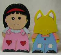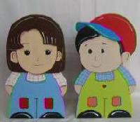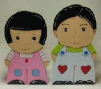 まずは男の子と女の子二人の紹介です。女の子の髪が前面にきましたので、おかしな感じもします。男の子は帽子をつけましたが、どんな色がいいかは悩むところです。服のデザインは同じで、色を少し変えました。