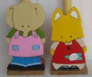次もゾウですが、新しい服を着せました。しかしこの服は板を切るのに時間がかかり、色を塗るのも面倒です。隣のキツネは可愛いのですが、服の色に気を使います。