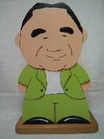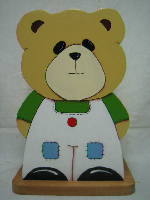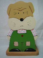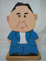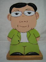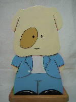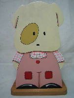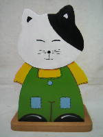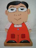 服の色の組み合わせもワンパターンになりました。シャツは白色が無難で、どんな色にも合います。数多く作るなかで、服の色は淡い色を使うようになりました。図案も二頭身タイプです。このようにすると板の切り出しがしやすく、そして無駄な端切れも少なくなります。