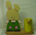 かねしんのレンタルボックスを利用して、トールペイントの販売をしています。展示している作品が売れればいいと考えていたのですが、平成21年の12月にお店を訪ねた方から特別な注文がありました。その方は「鉛筆立て4個」「キッチンペーパーホルダー4個」、そして「かっぱのペイント」でした。かっぱは伝説上の動物ですから、どんな姿にするか迷いました。指定された図案はなく、大きさだけを希望されました。最初はインターネットでかっぱを調べましたが、お気に入りの姿はありませんでした。そこで息子にデザインを依頼して、それを切り出しやすい形にしました。