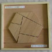 この切り継ぎパズルは、オーストラリアのハリー・リンドグレンの考案です。正六角形を形作る木片5個から、正方形を作ります。